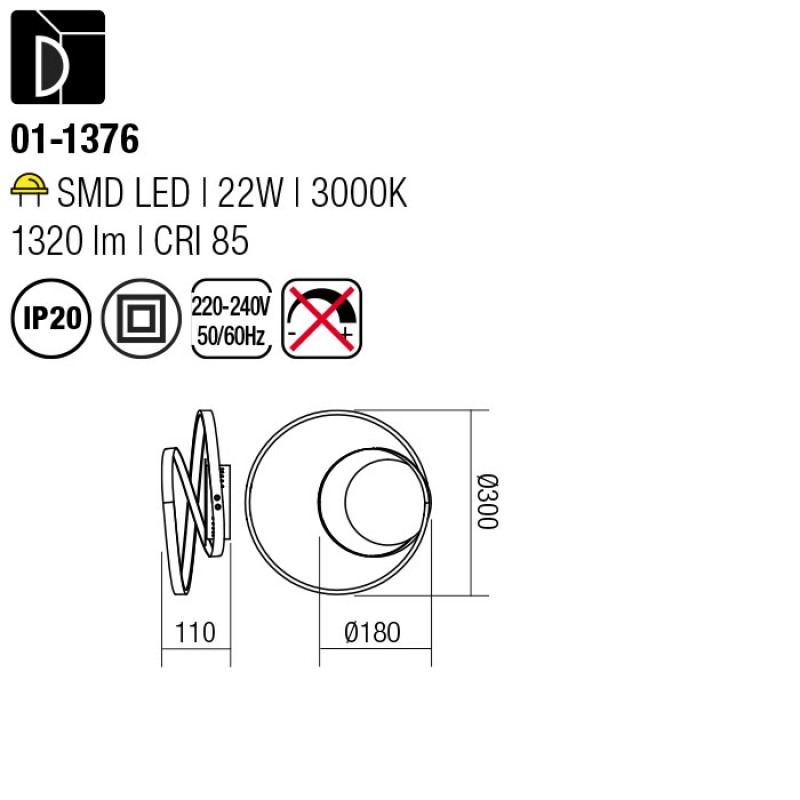 Aplică/plafonieră pentru interior, echipată cu LED-uri SMD, structură din aluminiu finisat maro, dispersor din PVC satinat. LED, 22W; 255 pcs x 0,09W, 2835 SMD LED; Flux luminos total: 1320 lm; Culoare de temperatura: 3000K.