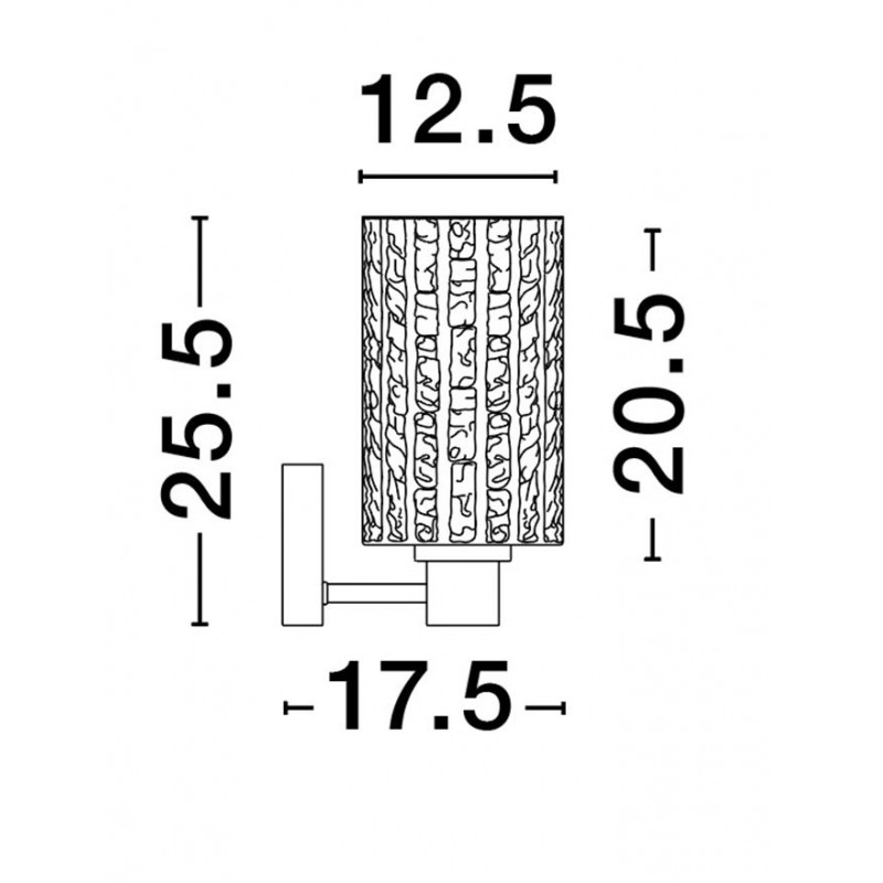Aplica moderna pentru interior, cu structura din metal finisata alama si abajur din sticla suflata transparenta amprentata la cald.