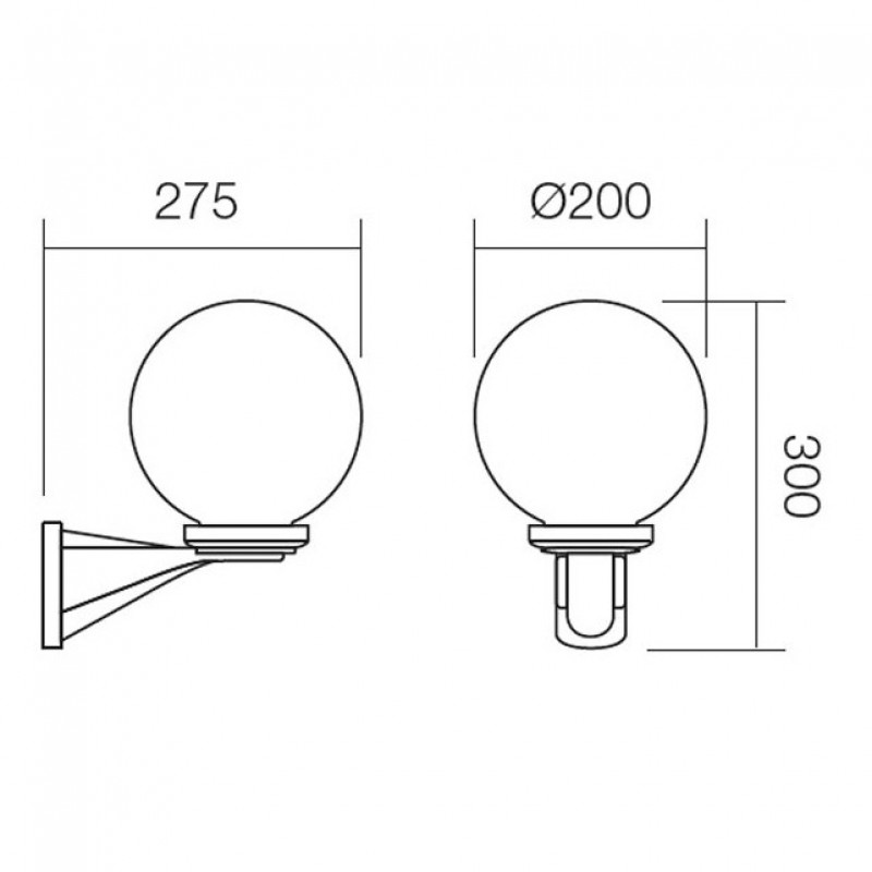 Aplica pentru exterior Sfera 9788 detine brat din policarbonat negru si dispersor sferic din acril fumuriu.Aplica Sfera 9788 este special creata pentru spatiul exterior datorita gradului ridicat de protectie impotriva corpurilor solide cu diametrul mai mare de 1 mm si a apei pulverizate din toate directiile, de IP44.