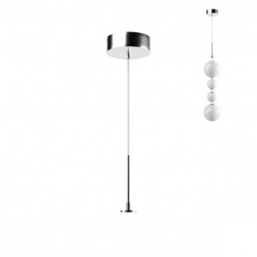 Kit de suspensie cu montaj aparent, pentru instalarea dispersoarelor din sticlă din gama BILIA. Se pot realiza diferite combinații cu condiția de a se ține cont de puterea driverului - maxim 30W. Structură din metal cromată, driver inclus.