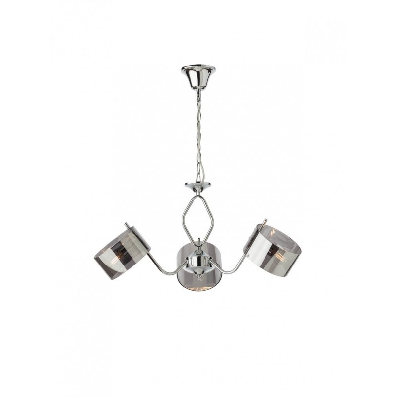 Lustra Duke 01-1510 este un corp de iluminat cu structura din metal cromat si abajururi din sticla fume.