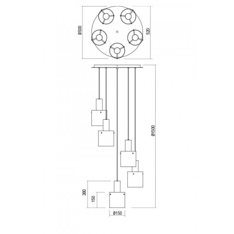 Suspensie Redo Lou 5xE27 Negru 01-2009