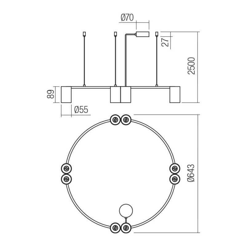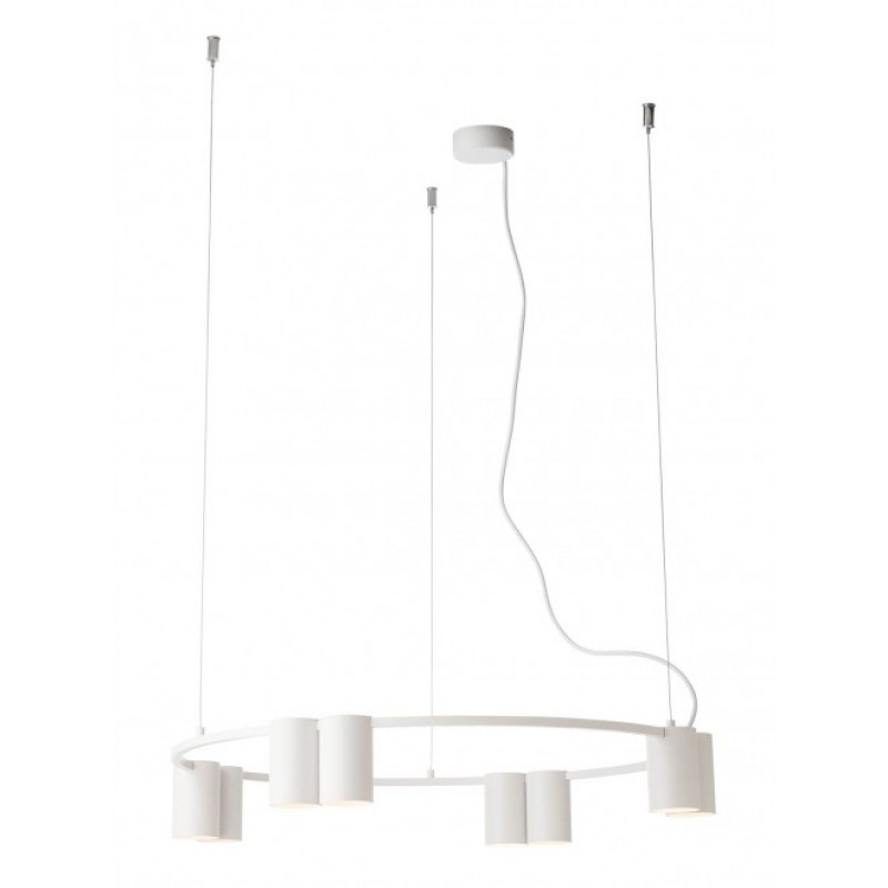 Suspensie modernă pentru interior, cu structură și abajururi din aluminiu turnat sub presiune vopsite în câmp electrostatic alb mat. Sursele de iluminat nu sunt incluse.